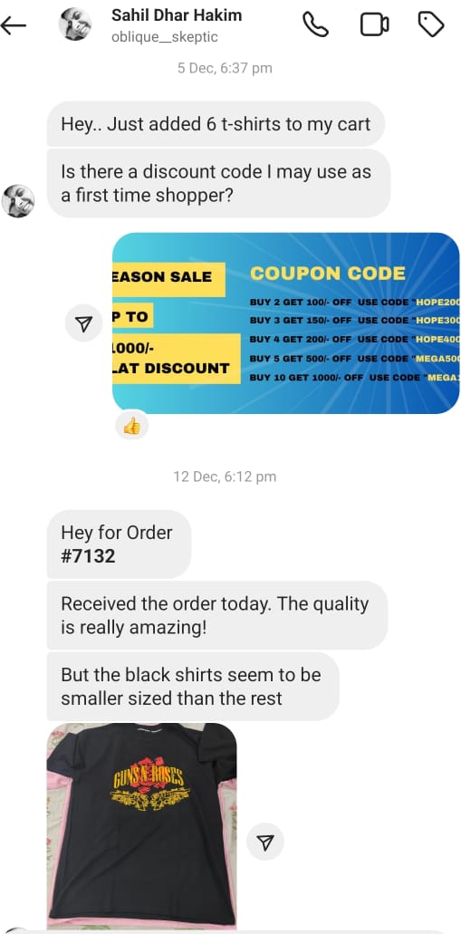 If your item is too big or small for you, we can Exchange the product. Please notify us at hopepunkclothing@gmail.com or call us at +91 7411704802 that you would like to get a replacement within 1-2 days after shipment is delivered ( or within reasonable time) , so we can check to make sure we still have that particular item in stock. Then, we will instruct you to send the item back unworn and in new condition with Hangtag intact. You will have to incur the shipping charge back to us, but we will pay for shipping back to you. Once we receive the item, we will send you the correct size.